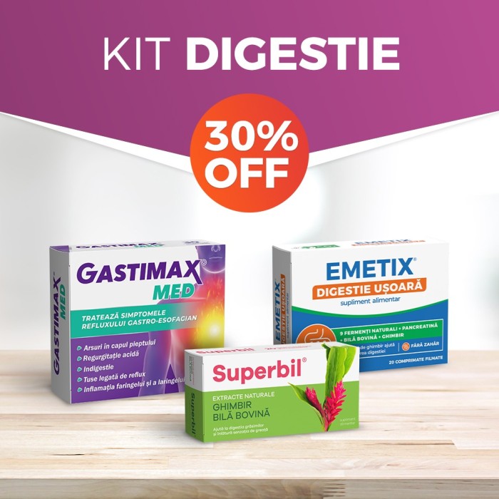 EMETIX® DIGESTIE UȘOARĂ conține un amestec complex de enzime digestive, extract uscat de bilă bovină și extract de ghimbir, ce ajută la susținerea digestiei. Are în compoziție 9 fermenți naturali + pancreatină + bilă bovină + ghimbir care te vor ajuta să te simți mai bine după mesele copioase.