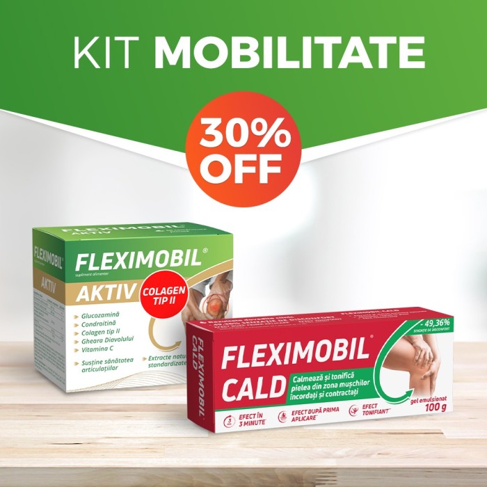FLEXIMOBIL® AKTIV este un supliment alimentar recomandat pentru menținerea sănătății sistemului osteoarticular la persoanele care solicită intens articulațiile, cum ar fi persoanele cu activitate fizică intensă, persoanele supraponderale, precum și cele de vârsta a treia.