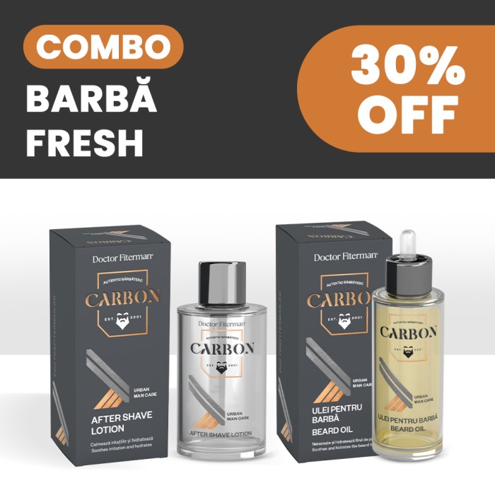 Pentru cei care iubesc after shave-ul lichid, am creat Doctor Fiterman Carbon After Shave Loțiune cu efect puternic hidratant, calmant și intens răcoritor, care oferă o senzație de prospețime, revigorare și confort în fiecare zi. Fără parabeni, fără conservanți.